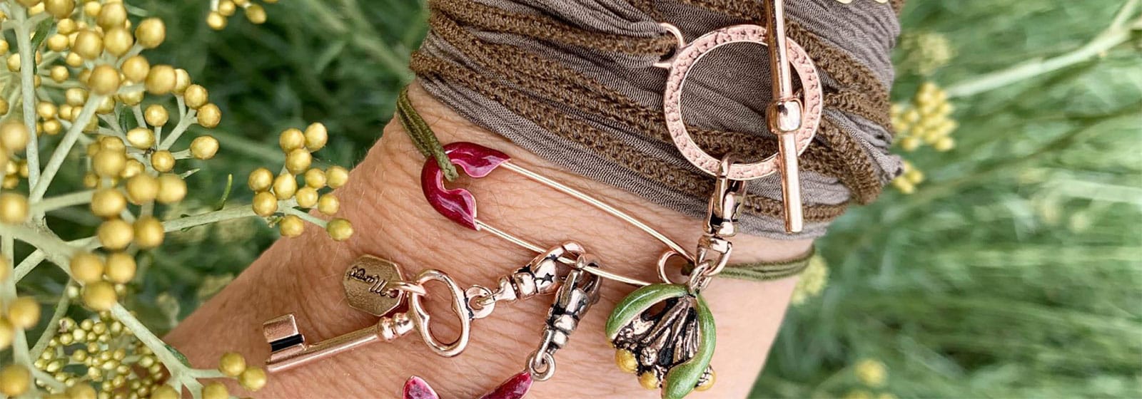 Pour concevoir ses bijoux, Antoinette s’inspire d’une tradition américaine : les charms. Des petits pendentifs que l’on vient accrocher à son bijou ; témoignages des grands évènements de la vie (naissance, baptême, mariage…).